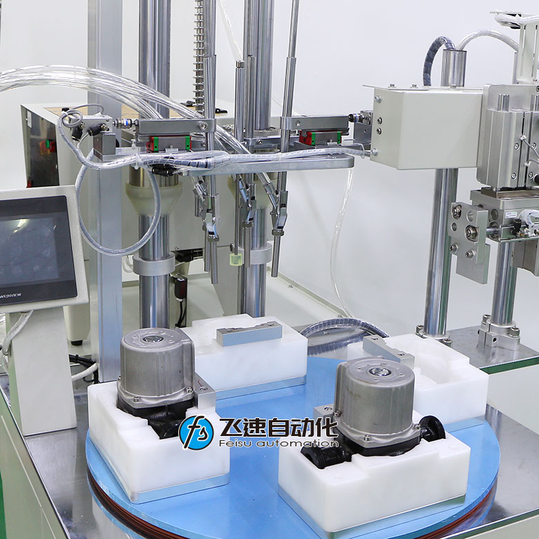 - 產品簡介: 本案例中多軸轉盤機械手式自動鎖螺絲機采用高效伺服擰緊系統鎖付,伺服電機驅動,運轉速度更快,并能通過觸摸屏任意調整每個電機的扭力值。對于鎖付細節有特殊要求的產品,如汽車發動機及零部件裝配、電子產品裝配、交通工具及零部件、壓縮機、儀表、泵、閥門等,都能適用。